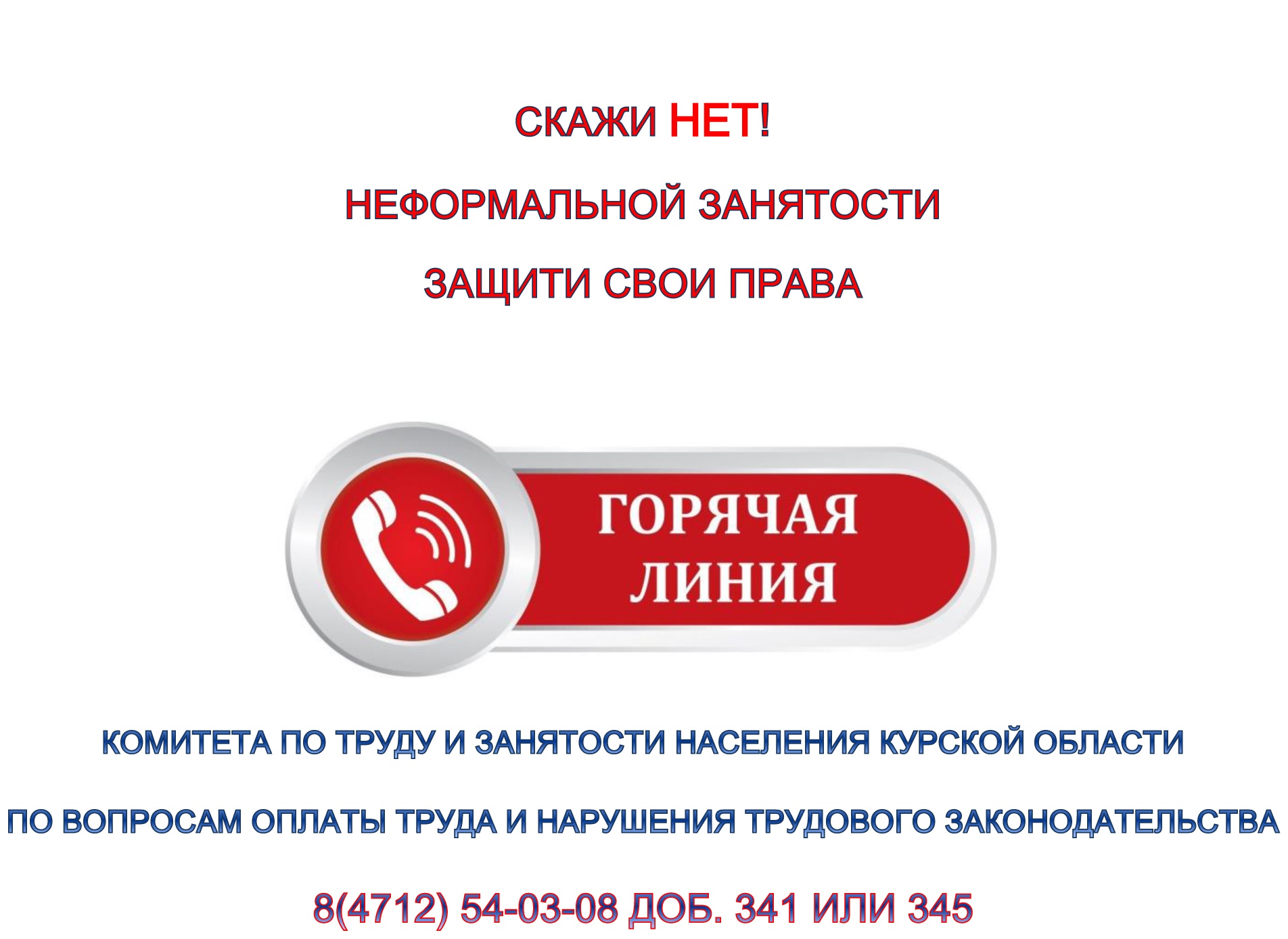 Получить консультации специалистов комитета по труду и занятости населения Курской области можно по телефону 8 (4712) 54-03-08 доб. 341 или 345