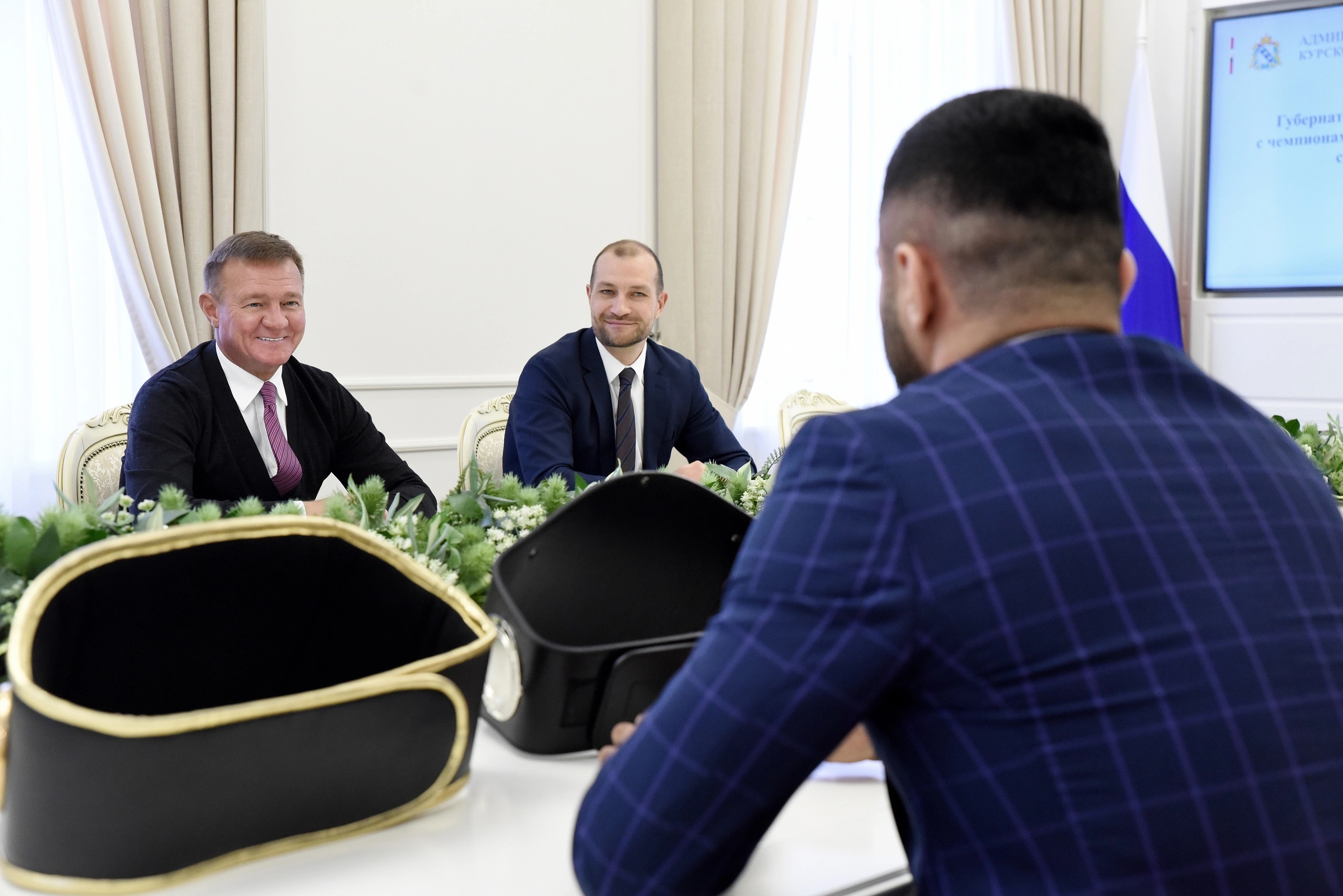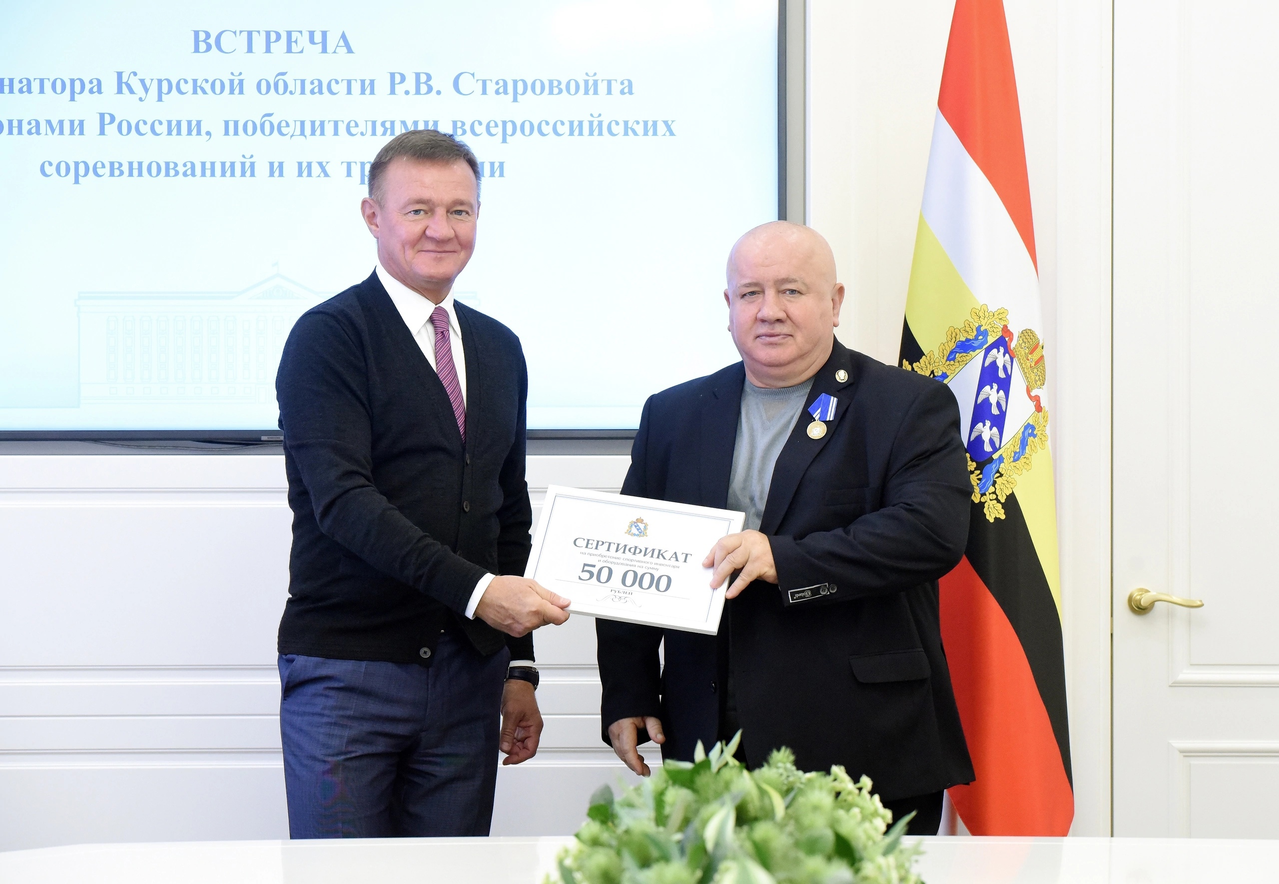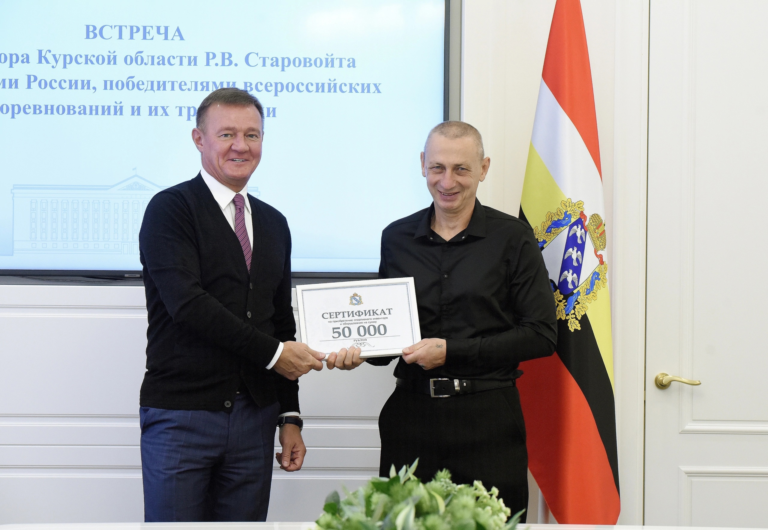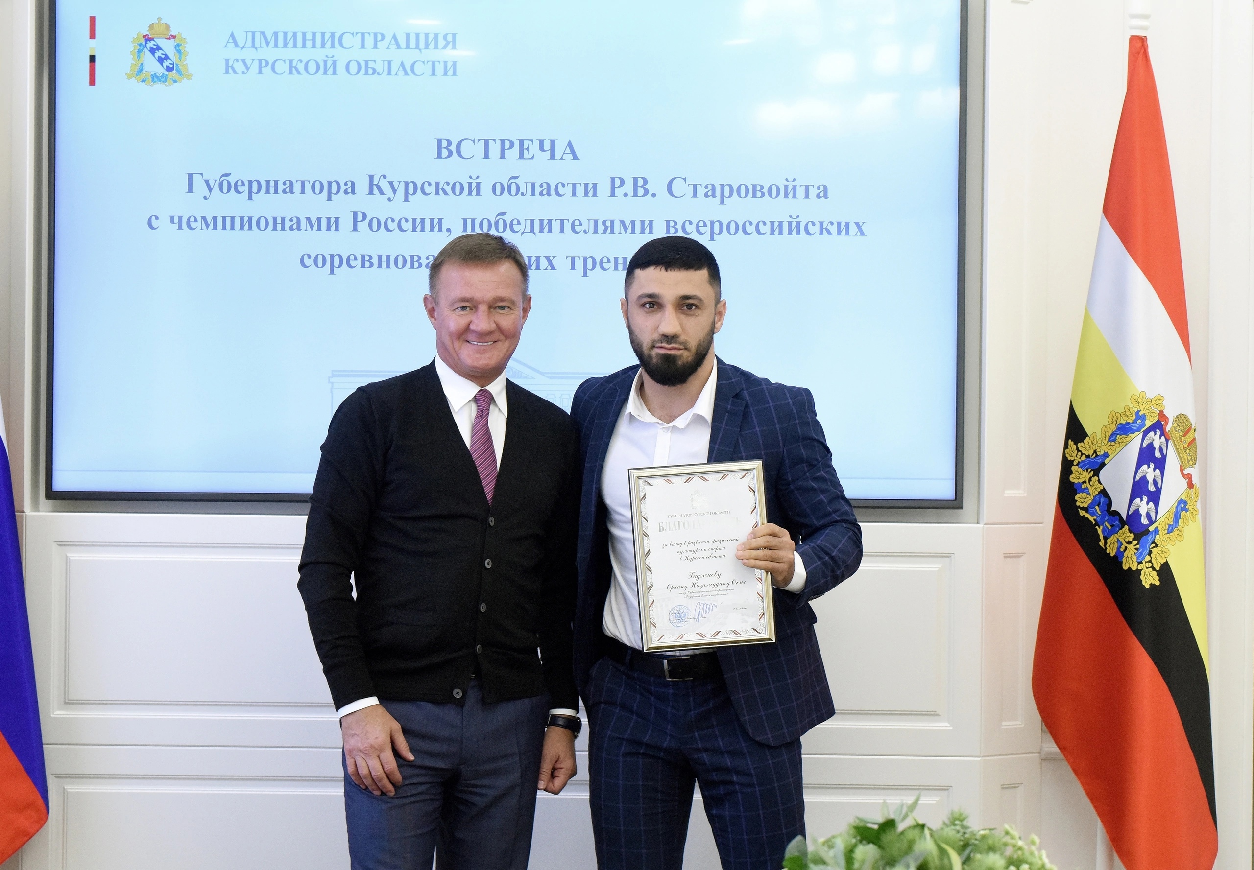 Губернатор Роман Старовойт встретился с курскими спортсменами, которые летом и осенью этого года стали победителями чемпионатов страны, всероссийских соревнований, и их тренерами.