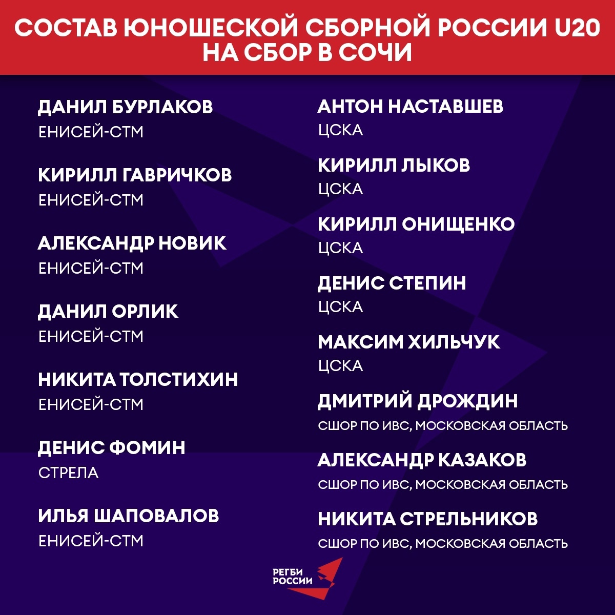 Воспитанники курской школы регби Кирилл Лыков, Максим Хильчук и Денис Степин попали в число 29 спортсменов, которые вызваны старшим тренеров Алексеем Волковым на первый сбор национальной юниорской команды.  Сборная России по регби (U20) начала подготовку к первенству Европы, которое пройдет в Португалии в ноябре. Удачи!