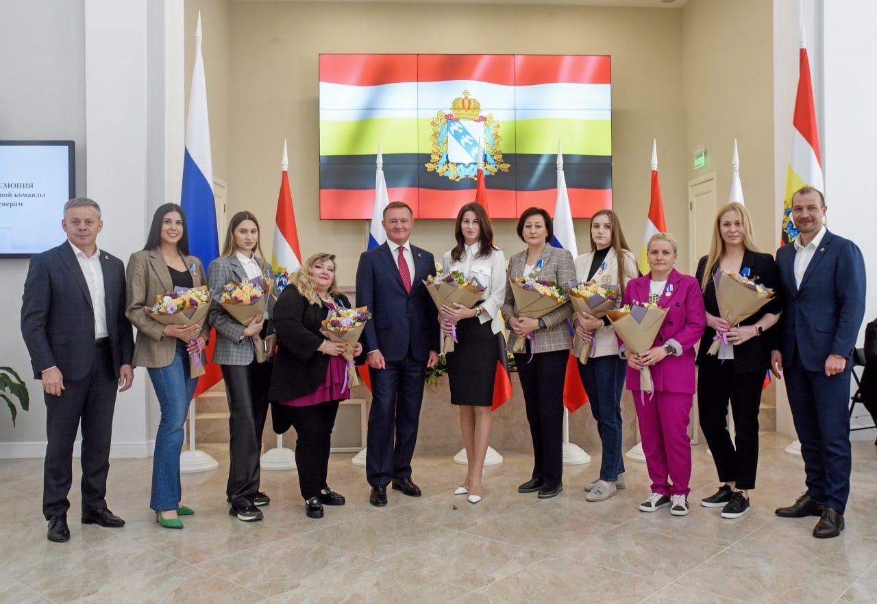 Губернатор Роман Старовойт встретился со спортсменками и их тренерами. Глава региона поздравил сборную с высокими результатами и вручил медали «За заслуги перед Курской областью» и почетную грамоту Губернатора Курской области.