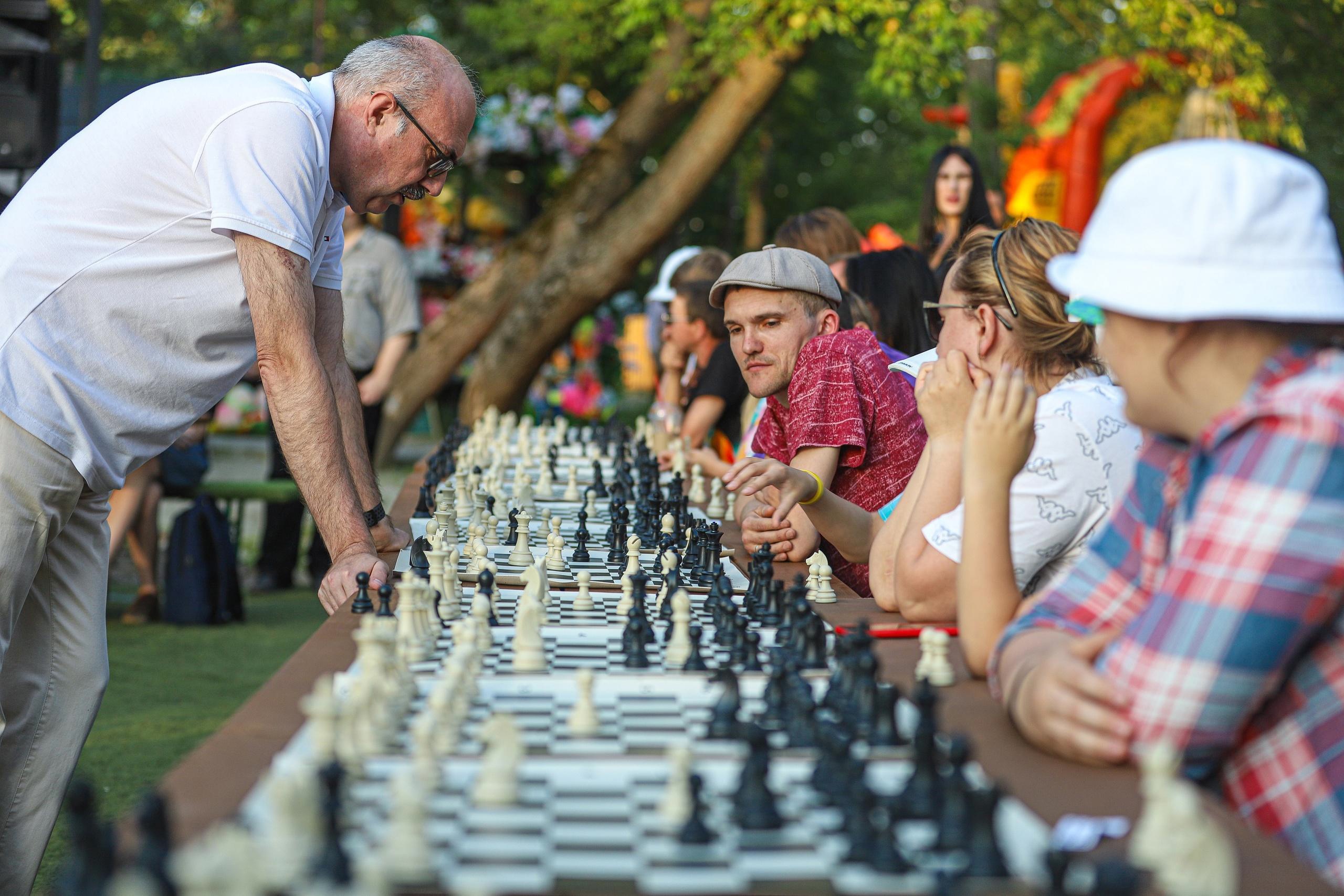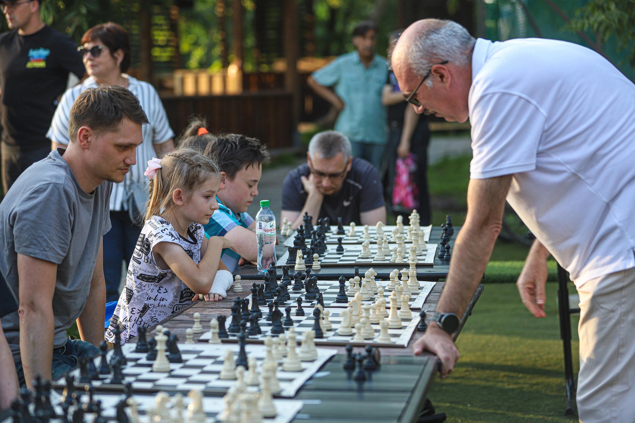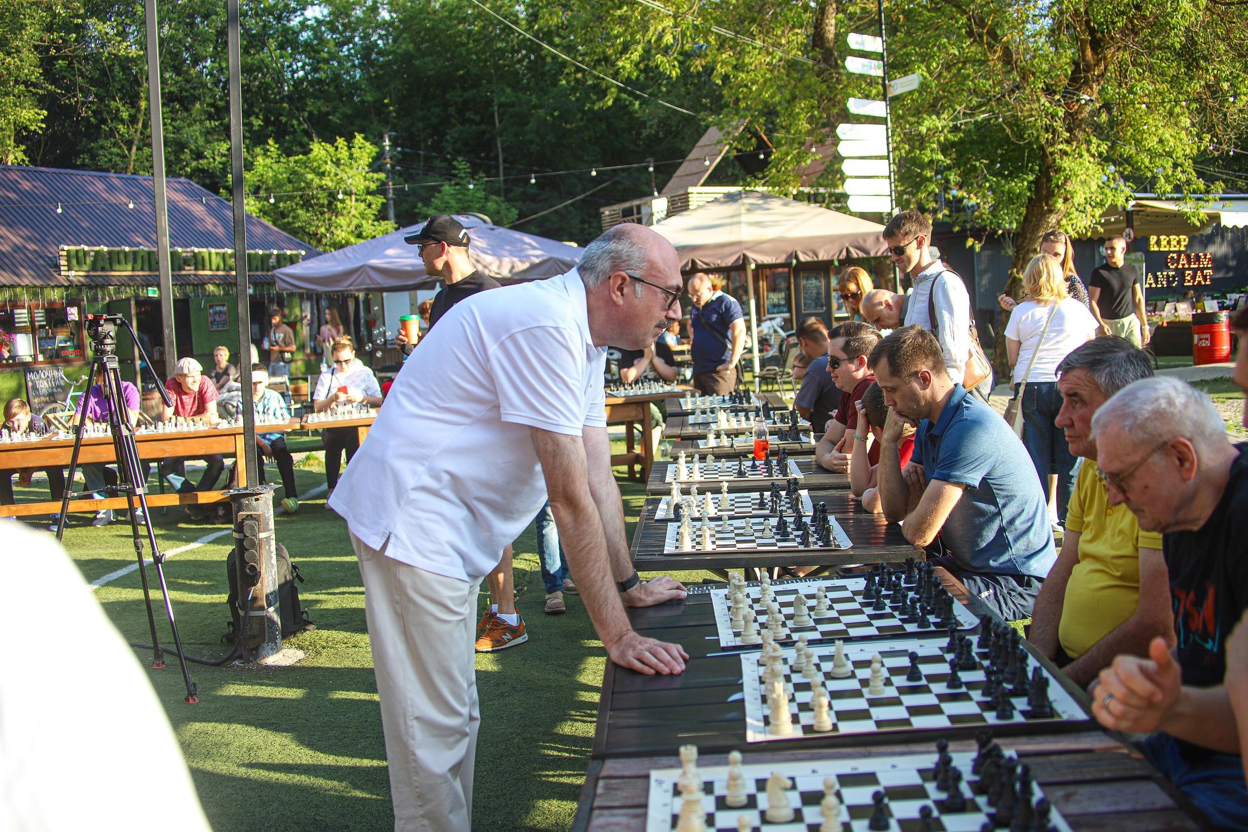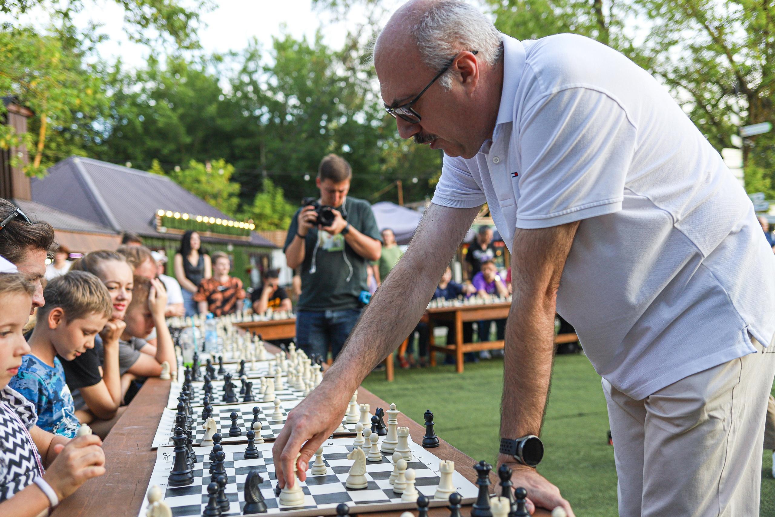 В Международный день шахмат 20 июля на Новой Боевке состоялся сеанс одновременной игры международного мастера Олега Куликова с 53 соперниками, которым было от 6 до 80 лет. Кстати, самый возрастной участник и нанес единственное поражение Олегу Анатольевичу. За три с половиной часа сеанса Олег Куликов одержал 49 побед, 3 встречи закончились ничейными результатами, а один матч он проиграл.