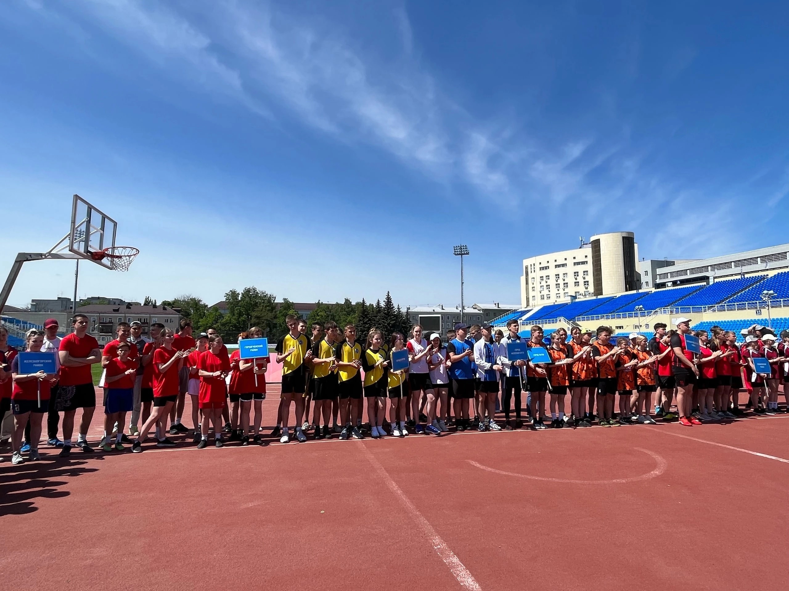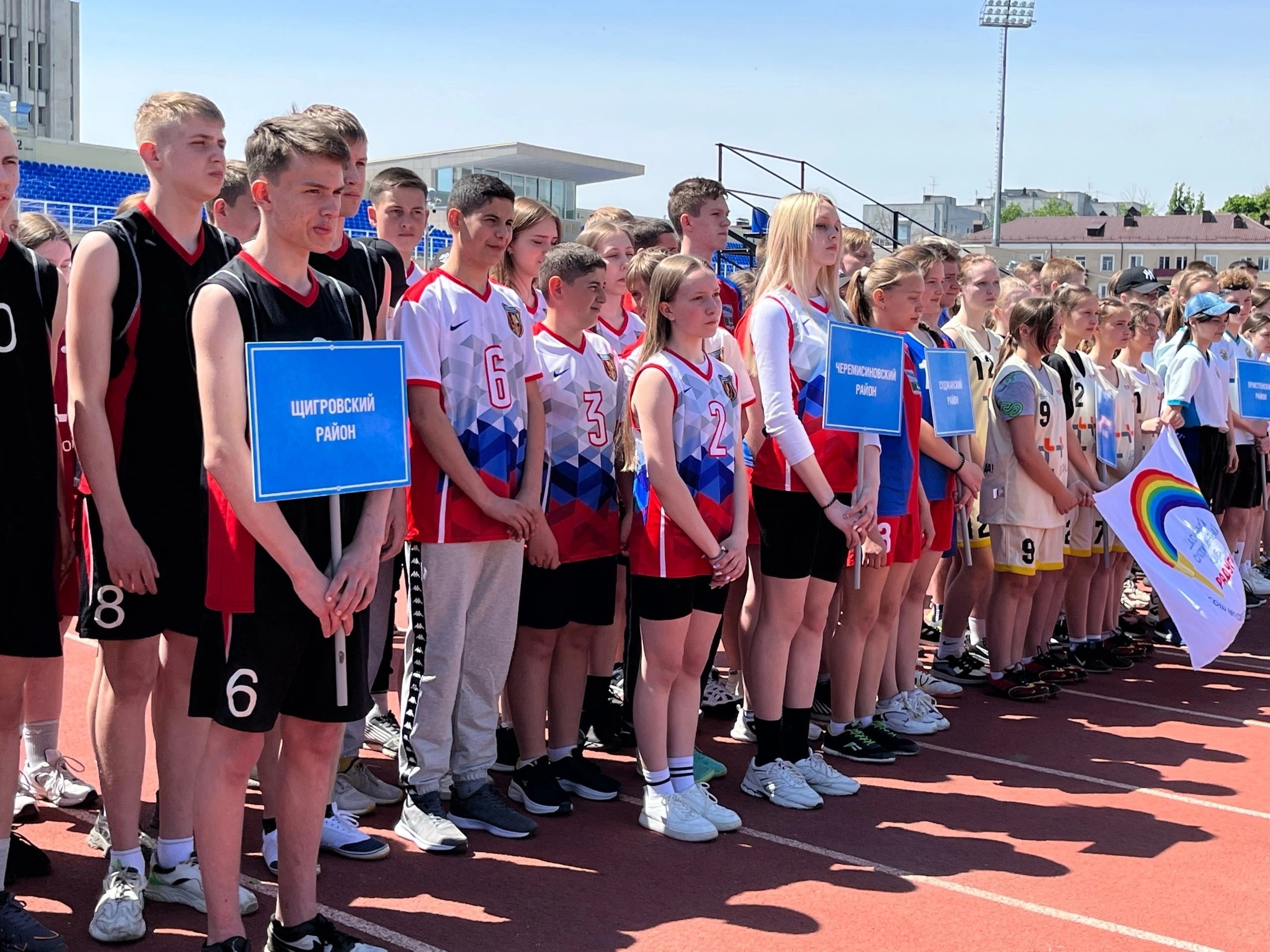 В Курске на стадионе «Трудовые резервы» провели открытие регионального этапа Всероссийских спортивных игр школьников «Президентские спортивные игры». В состязаниях принимают участие представители 28 муниципальных районов и городских округов – всего более 300 человек. В течение трех дней команды будут соревноваться в различных видах спорта, а также творческом и теоретическом конкурсах. Команда-победитель отправится на финальный этап Президентских спортивных игр, который пройдет на базе Всероссийского детского центра «Смена» в Краснодарском крае с 7 по 27 сентября. Фото: Курский областной центр туризма.