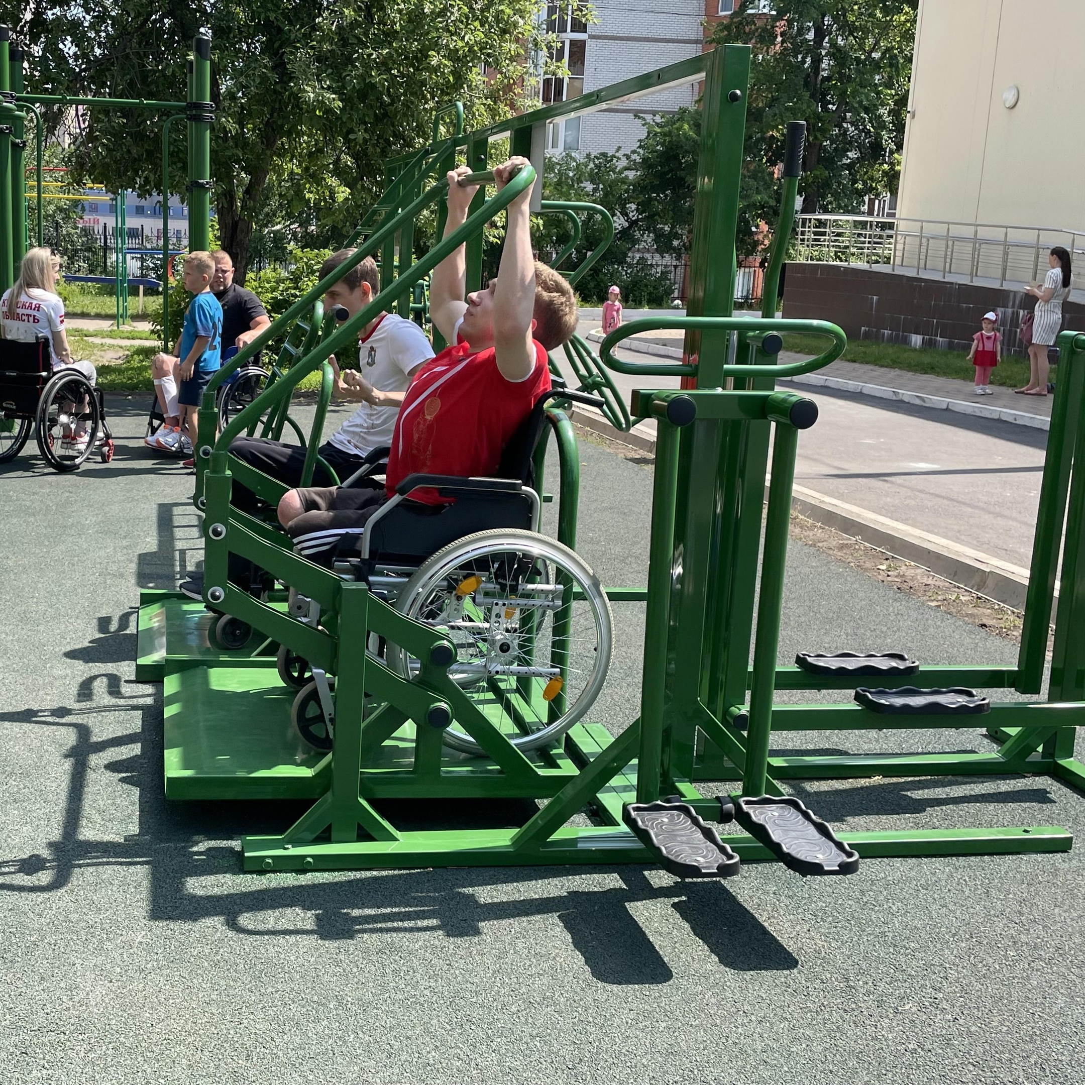 «Этот многофункциональный уличный комплекс появился благодаря программе «Доступная среда» и предназначен для тренировок на открытом воздухе всех категорий инвалидов, есть специальные тренажеры для колясочников. Оборудование предусматривает выполнение упражнений для развития и восстановления мышц рук, ног, живота, груди и спины», — рассказала советник губернатора Анна Гладилина.