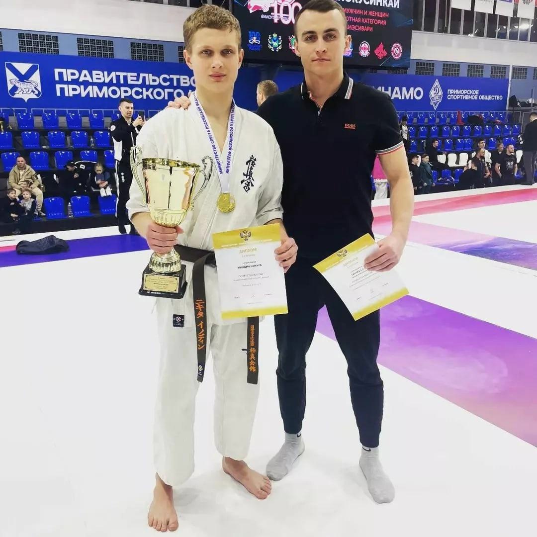 Курянин Никита Инодин во Владивостоке завоевал золотую медаль на первенстве России по каратэ киокусинкай. Боец выступал среди спортсменов 14-15 лет в весовой категории 65 кг. Всего в соревнованиях принимали участие более 600 человек. Отметим, Никита второй год подряд стал победителем первенства страны!