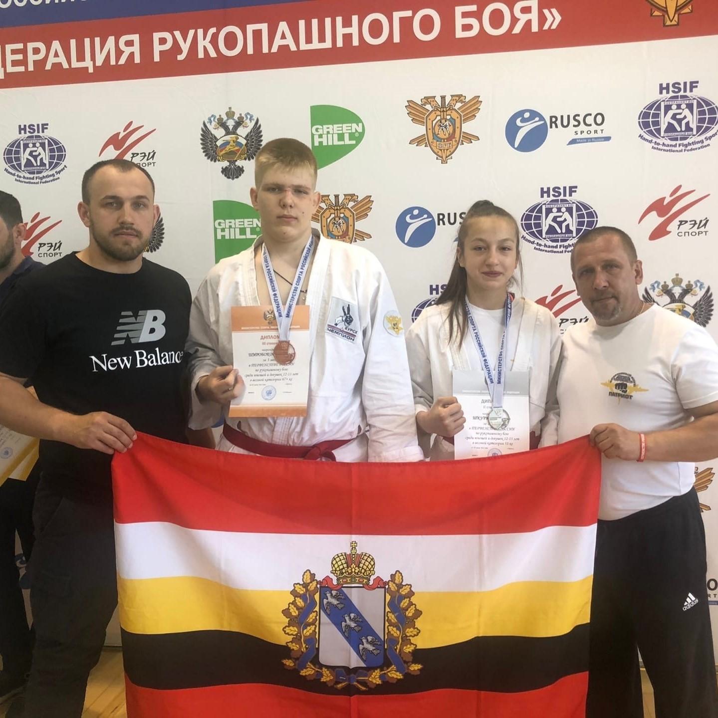 В Брянске завершилось первенство России по рукопашному бою среди спортсменов 12-13 лет. Соревнования собрали более трёхсот участников из 44 регионов страны. Сборная Курской области завоевала «серебро» и «бронзу»! Виктория Шкурко (тренер Юрий Кудинов) из Обояни заняла второе место, а Владислав Широбоков (тренер Евгений Дериглазов) из Курска стал третьим.