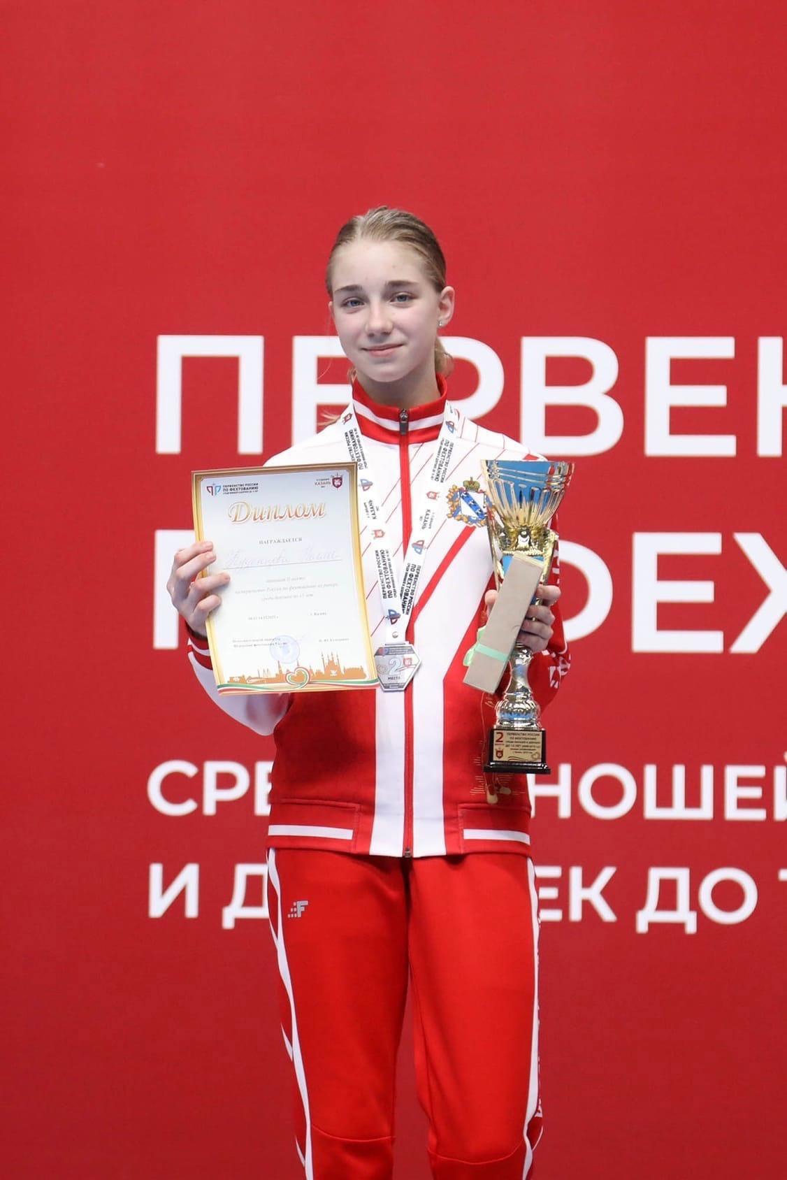 В Казани на детском первенстве России по фехтованию курская рапиристка Нелли Куденцова заняла второе место в личных соревнованиях. Поздравляем спортсменку и ее тренеров!