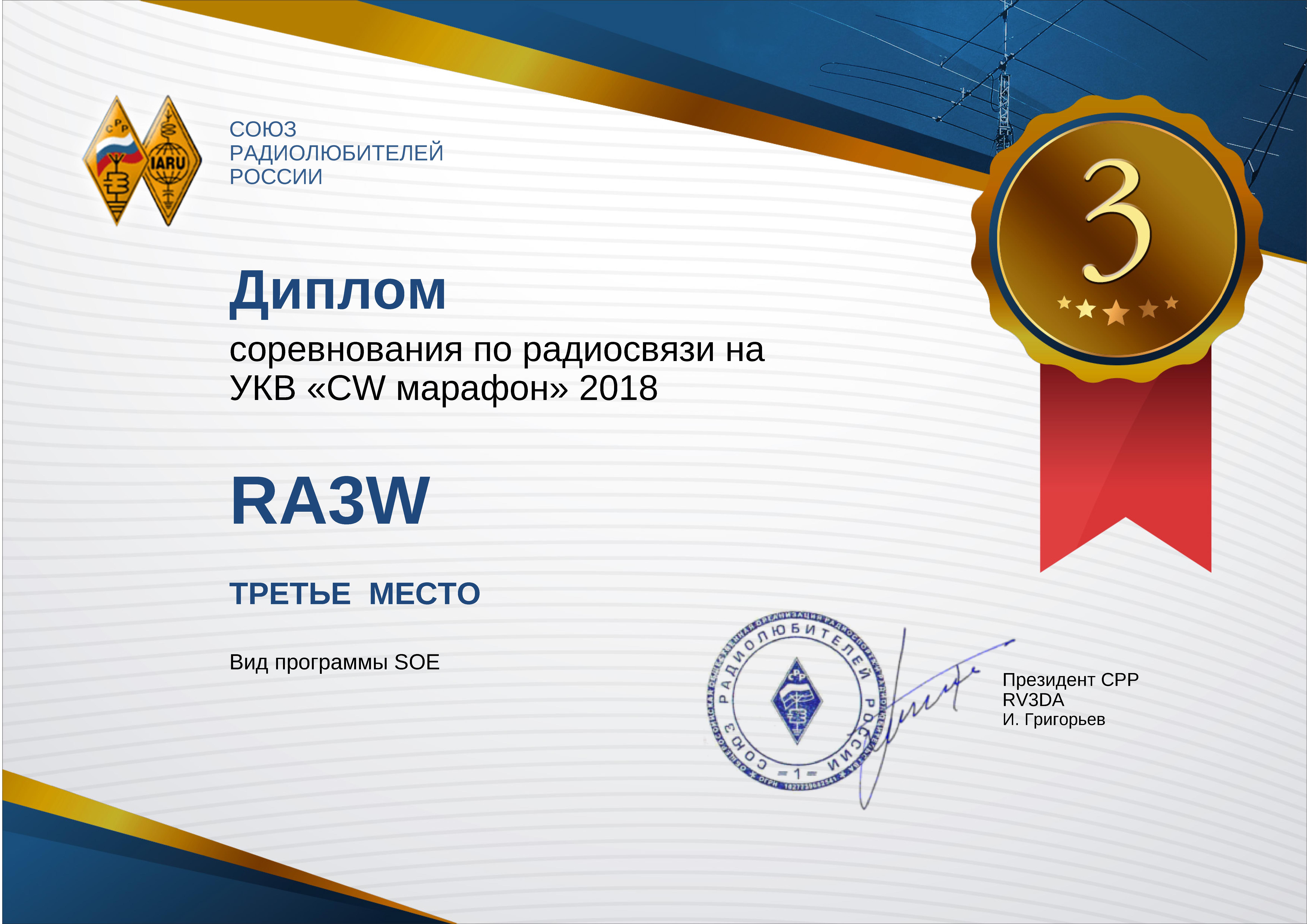 Рябыкин В.В. диплом радиоспорт 2018