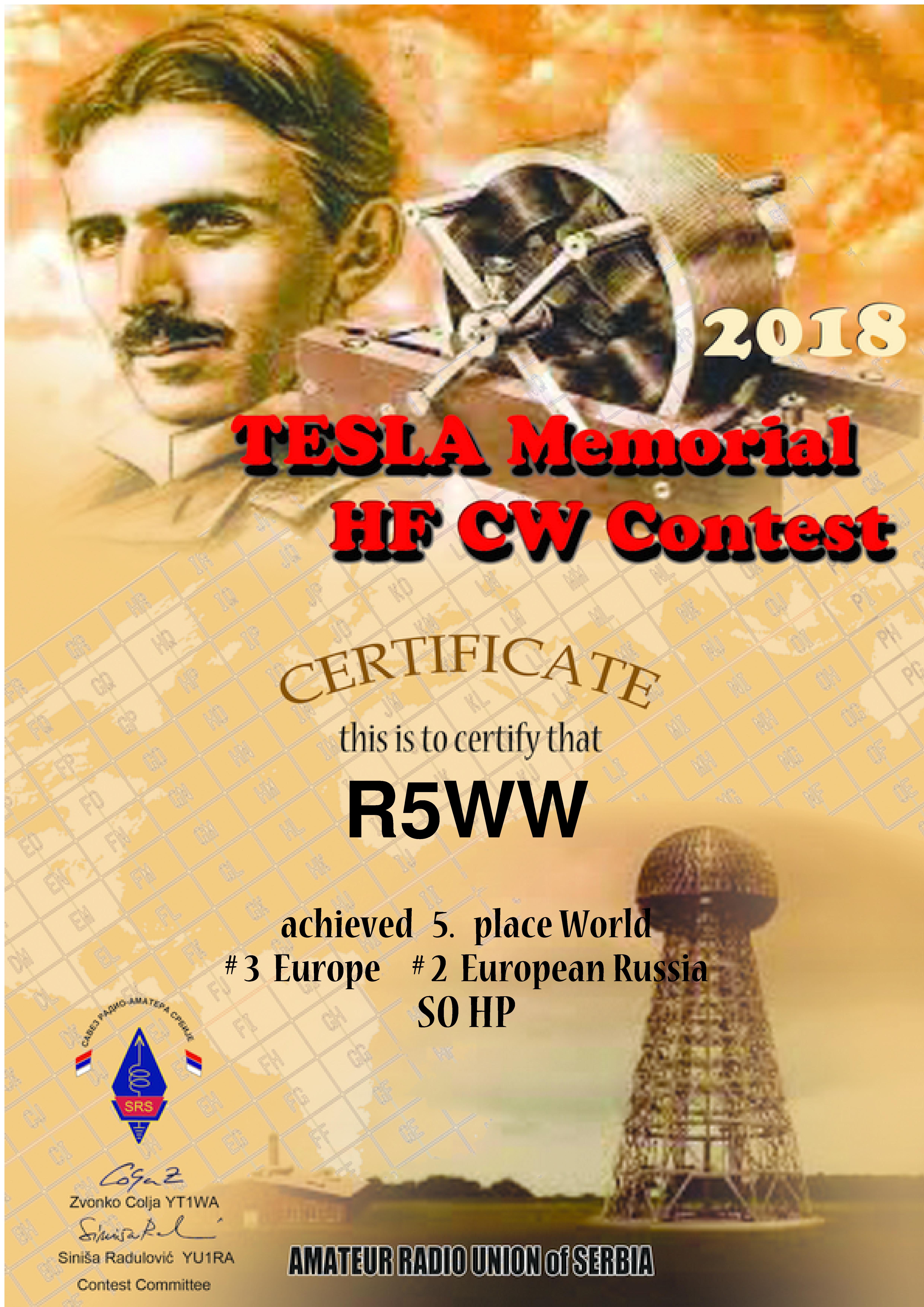 — Плугатарев Игорь Александрович (R5WW), руководитель РО «Союз радиолюбителей России» по Курской области, в соревнованиях Мемориал Тесла» занял пятое место в мире, третье в Европе, второе в Европейской части России;