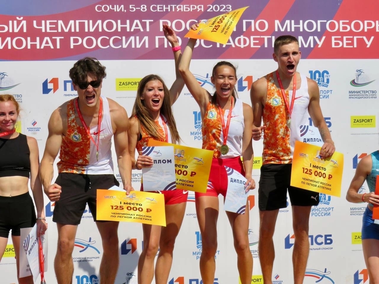 В Сочи команда Курской области завоевала золотые медали чемпионата России по эстафетному бегу. Владимир Лысенко, Екатерина и Максим Федяевы, Елена Морозова стали лучшими в смешанной эстафете 4 по 400 метров. Время победителей — 3.18.74