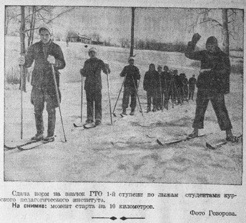 17 января 1938 года областная газета «Курская правда» опубликовала фото студентов педагогического института, которые выполняли норматив комплекса «Готов к труду и обороне». На фото запечатлен момент старта на 10 км.