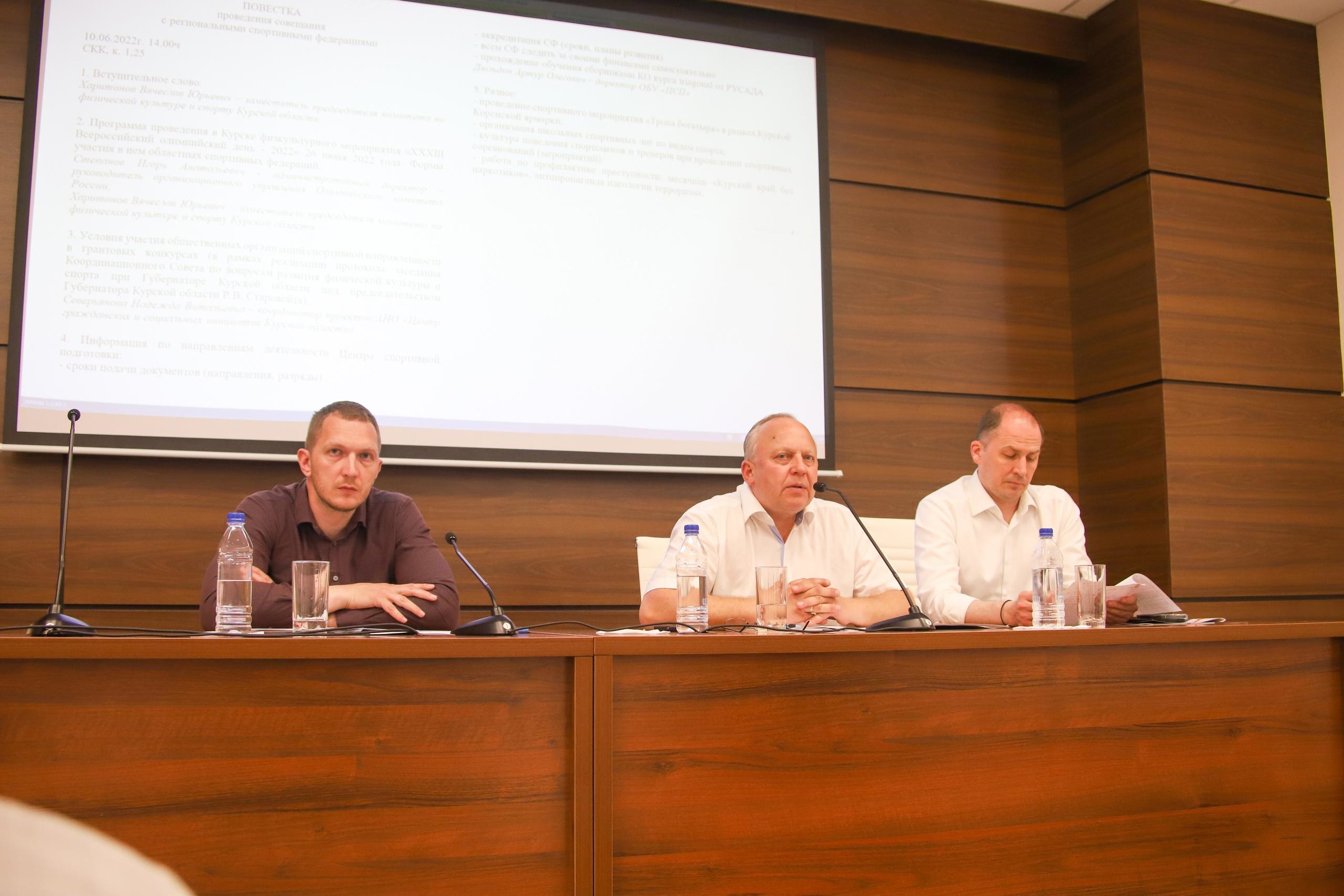 В Курске административный директор – руководитель организационного управления Олимпийского комитета России Игорь Степанов принял участие в совещании с представителями региональных спортивных федераций.