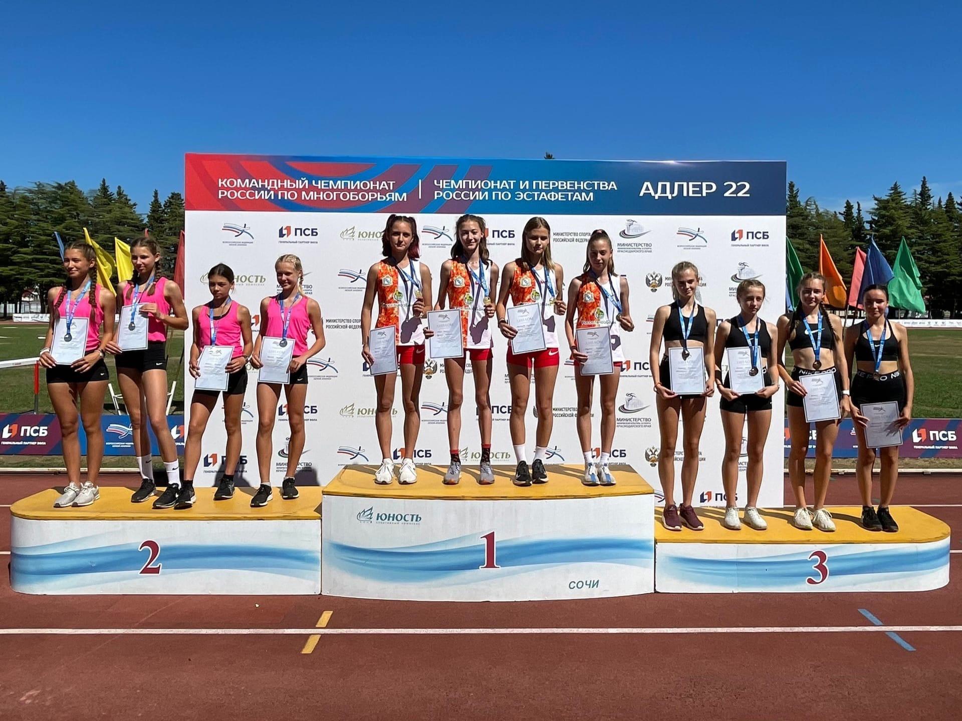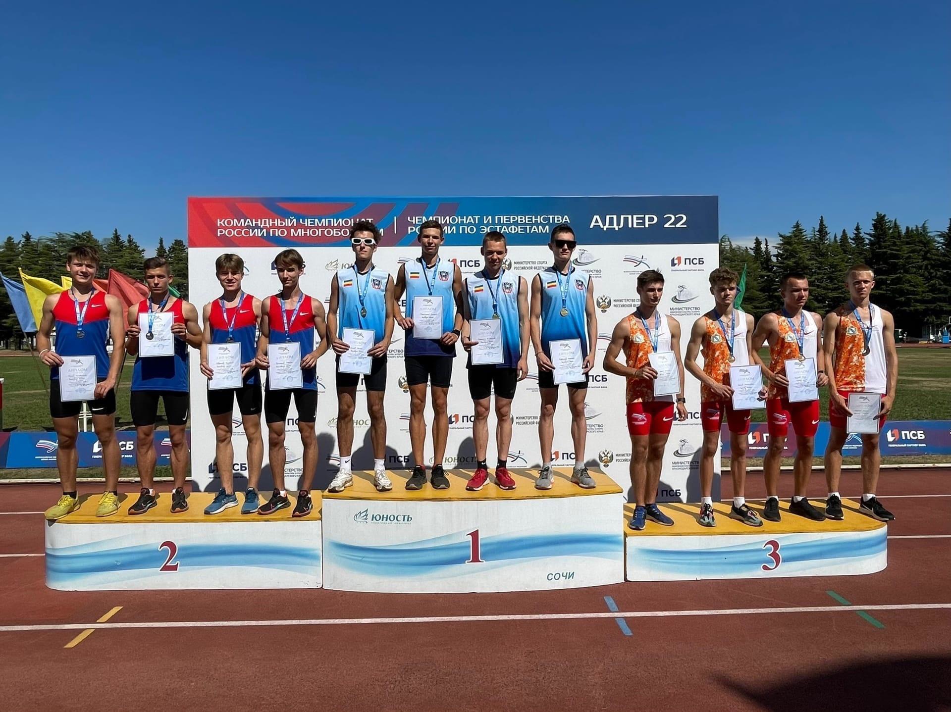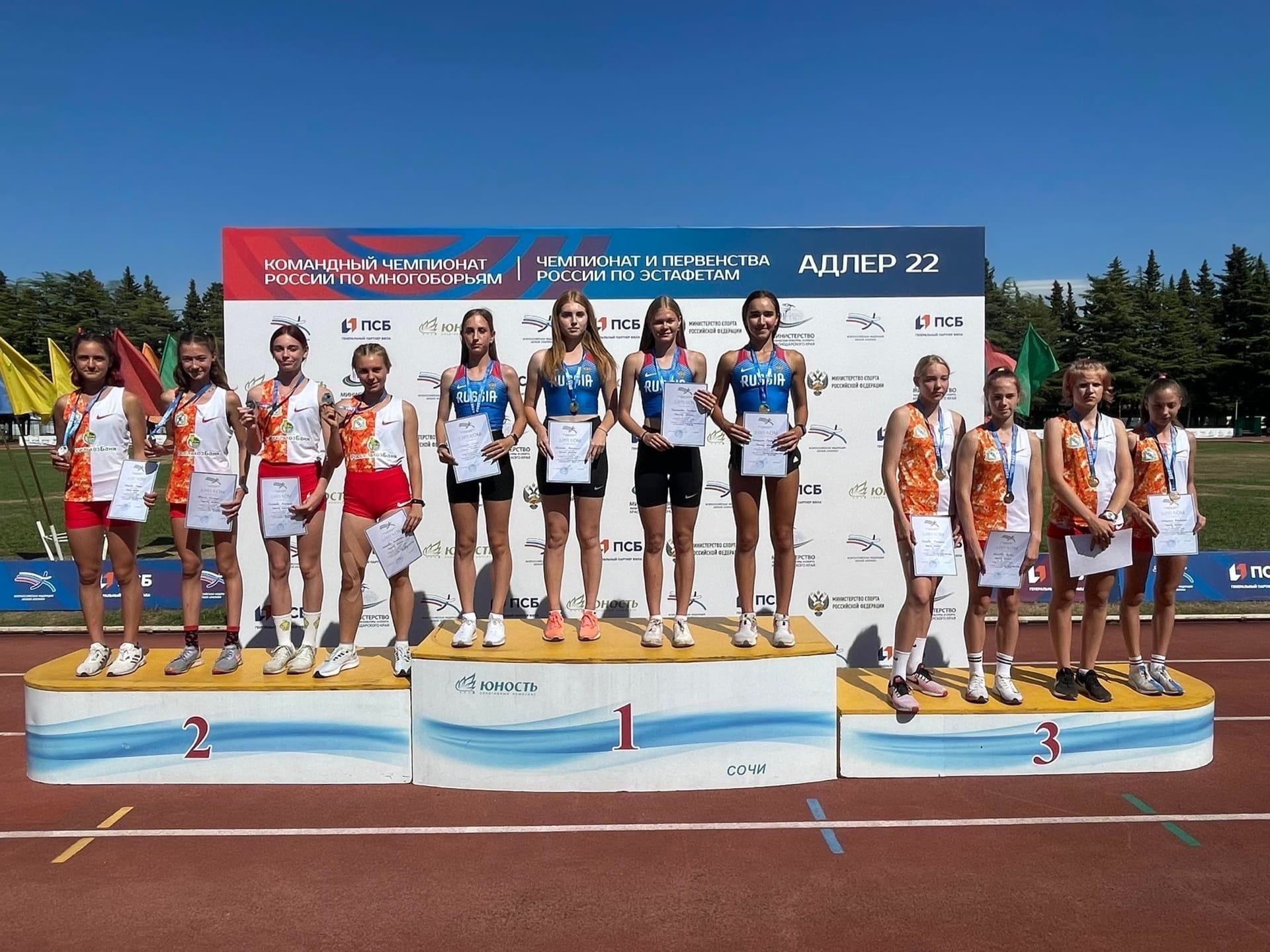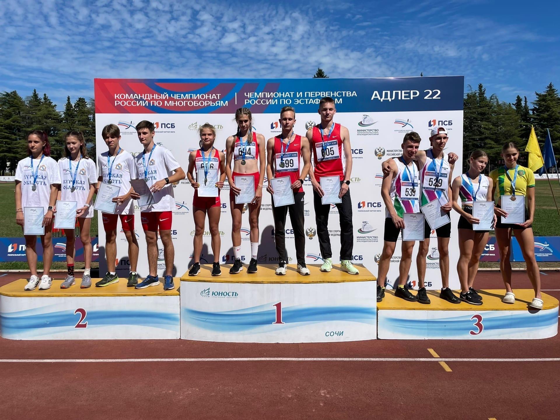 В Адлере завершились чемпионат и первенство страны по эстафетному бегу. Сборная Курской области завоевала 9 медалей: 3 «золота», 4 «серебра», 2 «бронзы». Анастасия Проскурина и Никита Некрасов выполнили норматив мастера спорта России! По информации региональной федерации легкой атлетики, в прошлом году в копилку Курской команды ушло 6 медалей: 2 золота, 2 серебра и 2 бронзы. Если сравнивать по количеству спортсменов, то конкуренция в этом году намного выше. Всего в чемпионате приняли участие 650 спортсменов, а в прошлом — 450, плюс в этом году было установлено два рекорда России!
